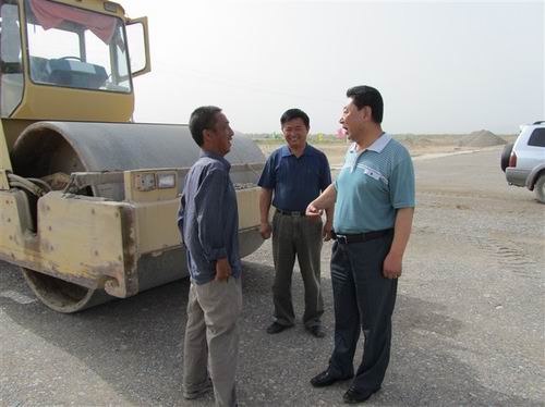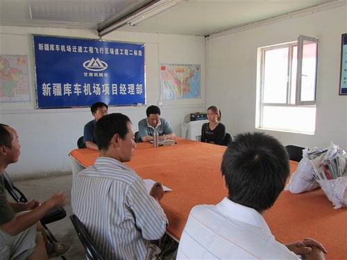近日,公司黨委書(shū)記胡德生、副總經(jīng)理祁迎喜帶領(lǐng)公司相關(guān)部門人員到新疆庫(kù)車機(jī)場(chǎng)項(xiàng)目經(jīng)理部工地進(jìn)行為期一周的2010年內(nèi)審和項(xiàng)目檢查,并對(duì)工地所有員工進(jìn)行慰問(wèn)。