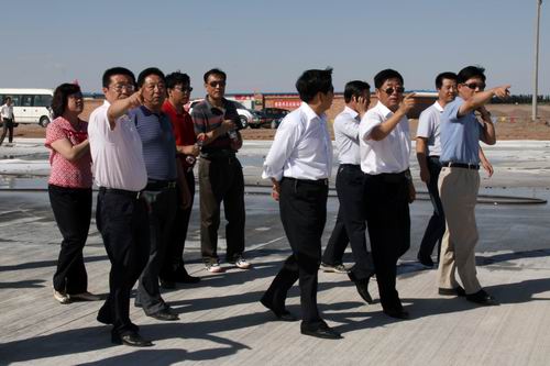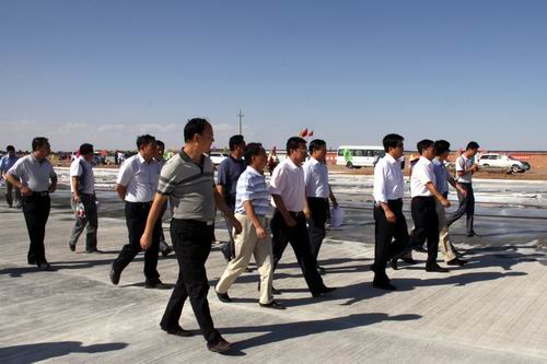8月21日,由喬新山局長率領的民航西北管理局工作檢查組一行蒞臨金昌機場飛行區施工現場檢查指導工作。在飛行區停機坪建設工地,在了解到公司金昌機場項目部僅用了二十五個晝夜完成了總面積2.65萬平方米停機坪道面工程的情況后,對大家的辛勤勞動給予了充分肯定,并鼓勵廣大建設者繼續鼓足干勁、克服困難,發揚求真務實、艱苦奮斗的作風,確保工程按期完工。