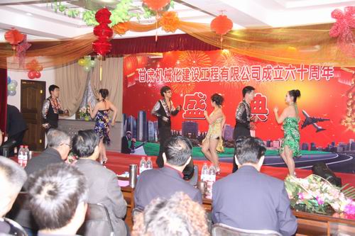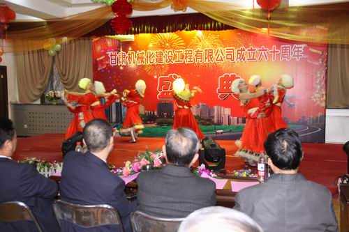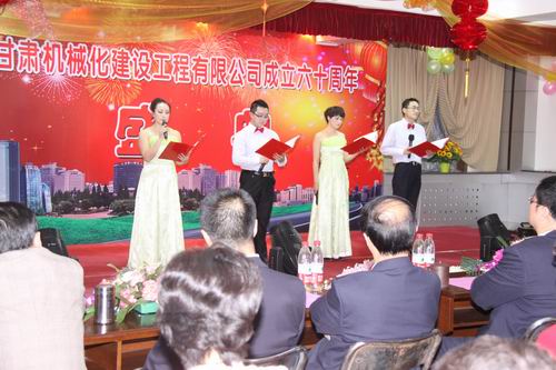 2013年3月22日下午兩點十分,甘肅機(jī)械化建設(shè)工程有限公司成立六十周年慶典大會在公司二樓大會議室舉行。公司領(lǐng)導(dǎo)、部分退休老領(lǐng)導(dǎo)、機(jī)關(guān)全體員工、各基層單位先進(jìn)個人及代表出席大會。大會分兩個階段進(jìn)行,公司黨委書記胡德生同志主持大會。大會第一階段,公司董事長陳想蕃先生向大會作慶典致辭,黨委書記胡德生同志作了重要講話。大會第二階段為公司文藝匯演,匯演共十二個節(jié)目,公司領(lǐng)導(dǎo)及員工歡聚一堂,表演精彩紛呈,現(xiàn)場氣氛非常熱烈,大會持續(xù)了近兩個小時。