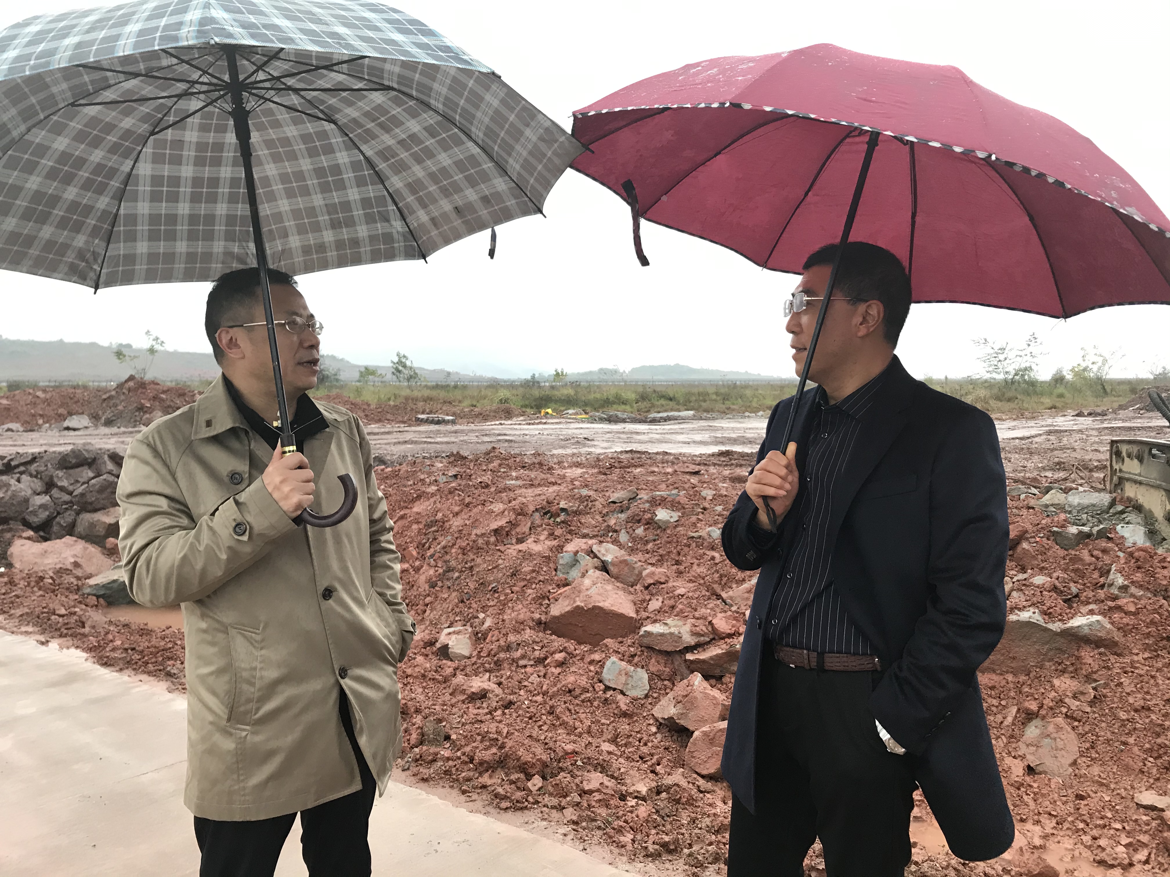 11月24日下午,伴隨著綿綿細雨,董事長陳想蕃應重慶機場集團有限公司副總經理、重慶江北機場擴建工程指揮長張明進相約,在相關負責人的陪同下,對我司承建的重慶江北國際機場凈空應急處置建設工程進行實地查看。