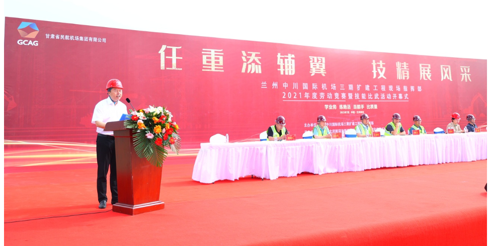 7月27日上午,由蘭州中川國際機(jī)場三期擴(kuò)建工程現(xiàn)場指揮部主辦,我司與西安西北民航項目管理有限公司承辦,為期兩天的蘭州中川國際機(jī)場三期擴(kuò)建工程2021年度“勞動競賽曁技能比武”活動順利開幕。蒞臨開幕式的領(lǐng)導(dǎo)有蘭州市蘭州新區(qū)黨群部秦副部長、蘭州市西固區(qū)總工會楊主席、蘭州中川國際機(jī)場三期擴(kuò)建工程現(xiàn)場指揮部黨委書記、指揮長,黨委副書記、常務(wù)副指揮長等領(lǐng)導(dǎo),以及我司黨委書記、副總經(jīng)理和來自8家參賽單位的領(lǐng)導(dǎo)和參賽選手。