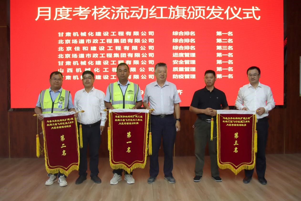此次會(huì)議對(duì)施工單位八月份的相關(guān)工作進(jìn)行了綜合考核,我司烏魯木齊機(jī)場項(xiàng)目經(jīng)理部在8家施工單位評(píng)比中獲得綜合第一名、安全第一名、防疫第一名的好成績,得到了業(yè)主方、擴(kuò)建指揮部及監(jiān)理單位的一致認(rèn)可。同時(shí)會(huì)議對(duì)九月份全場飛行區(qū)工程的相關(guān)工作進(jìn)行了部署,下達(dá)了各標(biāo)段施工任務(wù)。