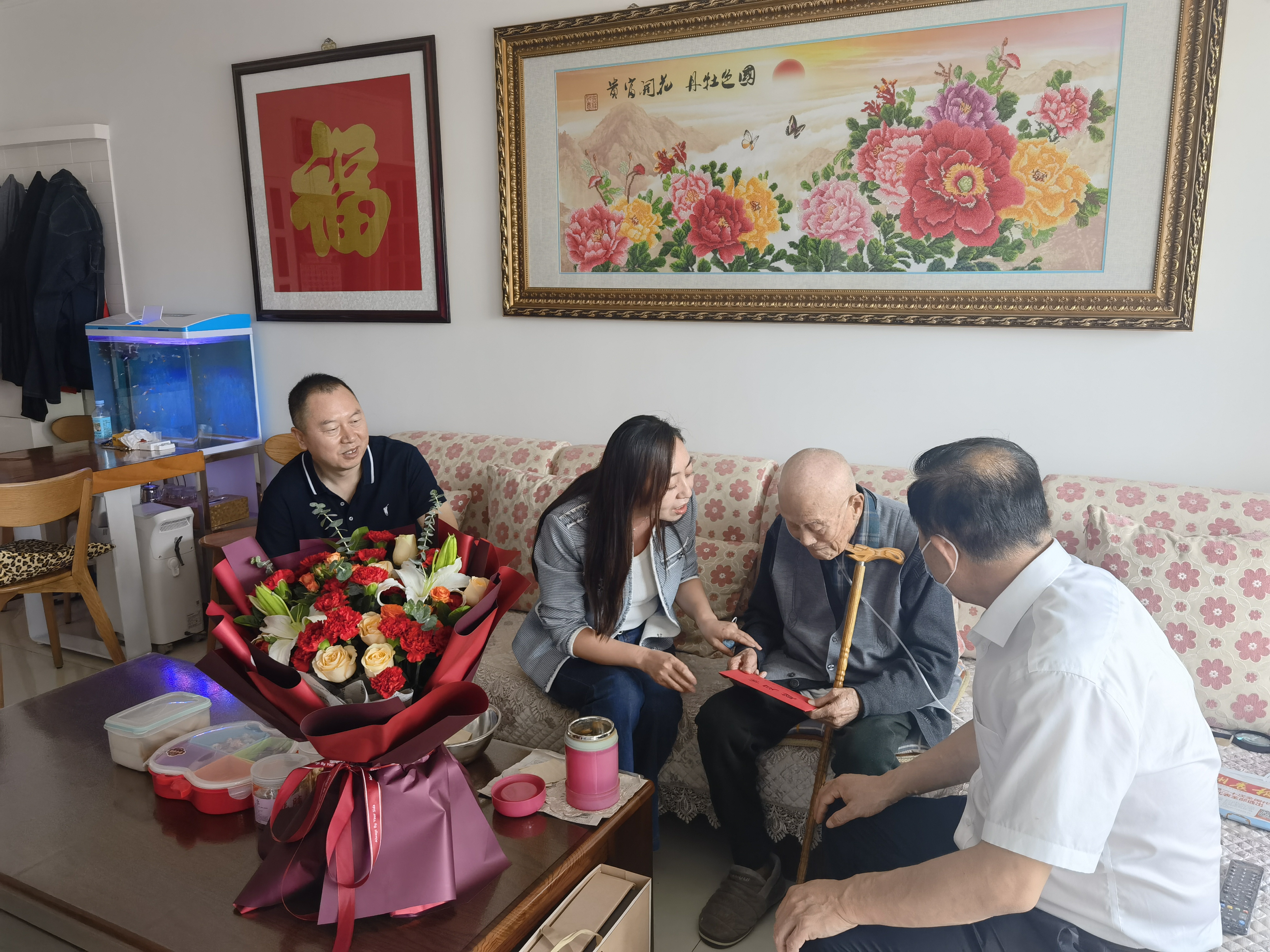 在楊寶藩老人家里,看到他在家人的照顧下,身體健康、精神狀態(tài)良好,大家十分高興。