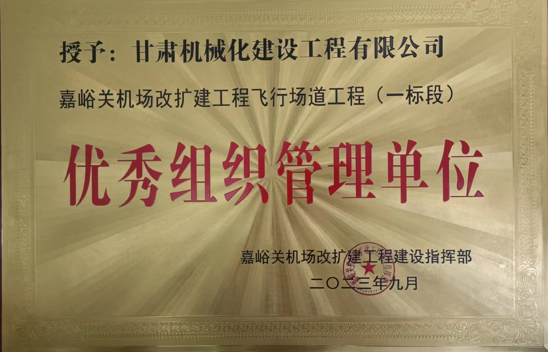 近日,嘉峪關機場改擴建工程建設指揮部對在嘉峪關酒泉機場改擴建工程中作出重要貢獻的參建單位給予通報表彰,公司榮獲“嘉峪關機場改擴建工程飛行場道工程 (一標段)優秀組織管理單位”稱號,徐栓紅同志被授予“優秀技術負責人榮譽稱號”。?