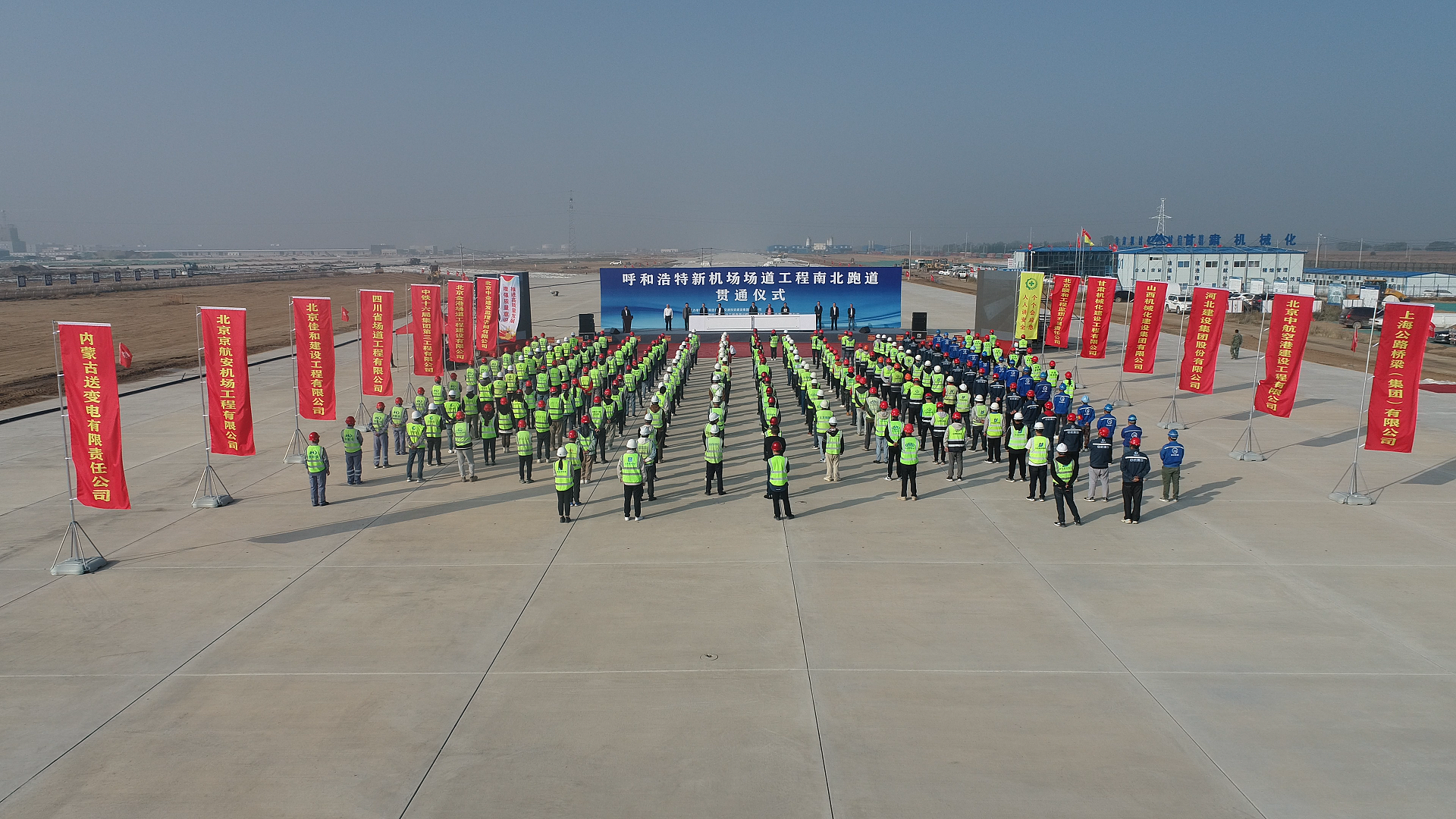 9月26日,呼和浩特新機(jī)場場道工程南北跑道貫通儀式在呼和浩特新機(jī)場施工現(xiàn)場舉行。公司黨委書記參加貫通儀式并代表飛行區(qū)場道施工單位致詞。