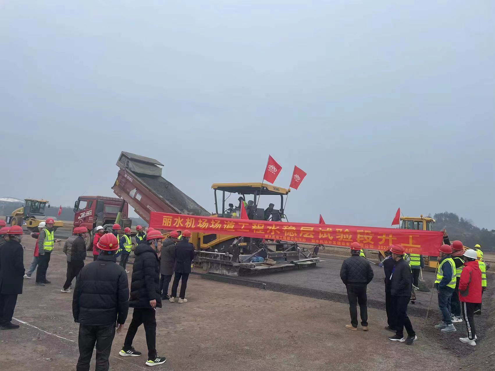 12月18日,伴隨著第一車(chē)水泥穩(wěn)定砂礫混合料緩緩倒入攤鋪機(jī)料斗,標(biāo)志著由我司承建的麗水機(jī)場(chǎng)場(chǎng)道工程水穩(wěn)基層試驗(yàn)段施工正式拉開(kāi)序幕。
