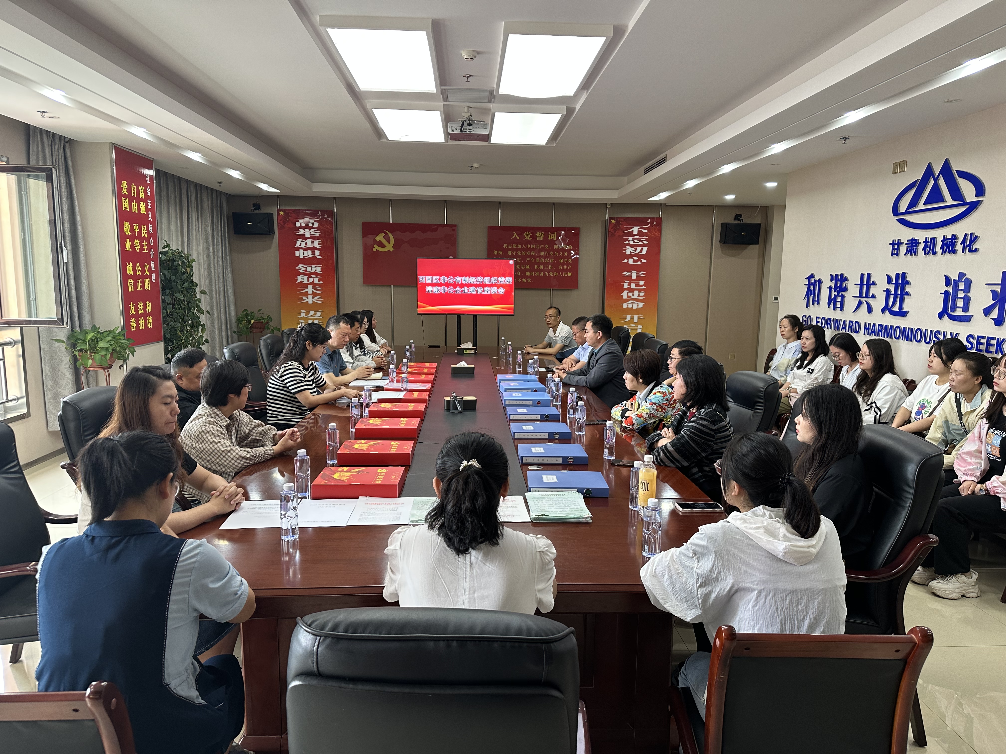 為進一步加強清廉非公企業建設工作,不斷促進非公企業持續發展,7月13日,西固區非公有制經濟組織黨委開展了“黨旗領航激活力 清廉企業促發展”清廉非公企業建設互學互訪主題觀摩活動暨座談活動。西固區9家非公企業黨組織書記以及13名黨建專干前往清廉非公企業黨建示范點——甘肅機械化建設工程有限公司黨委,進行觀摩學習。